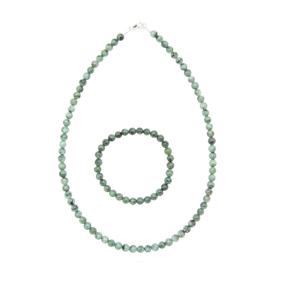 Parure composée du bracelet et du collier en émeraude en pierres boules de 6mm