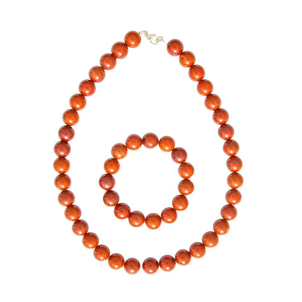 Parure composée du bracelet et du collier en jaspe rouge en pierres boules de 12mm
