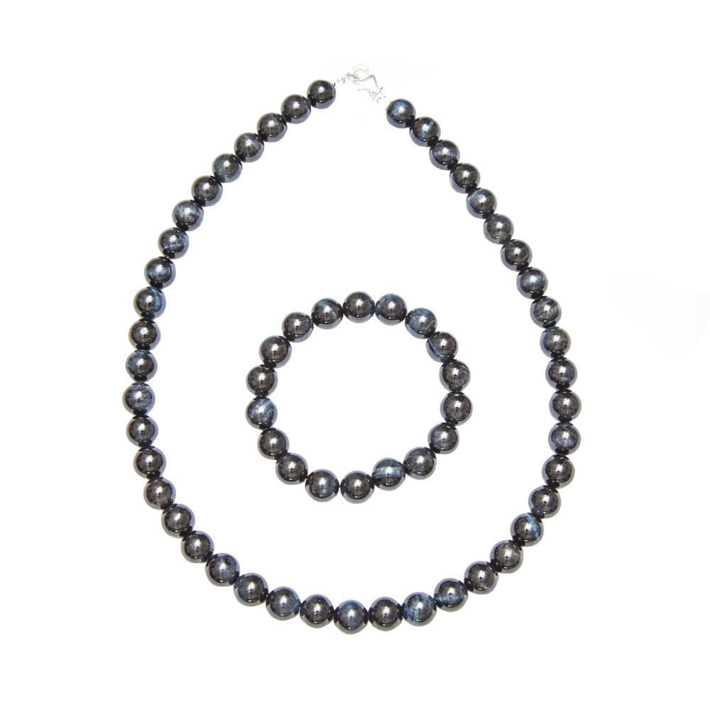 Parure composée du bracelet et du collier en œil de faucon en pierres boules de 10mm
