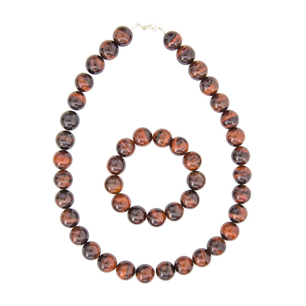 Parure composée du bracelet et du collier en oeil de taureau en pierres boules de 14mm
