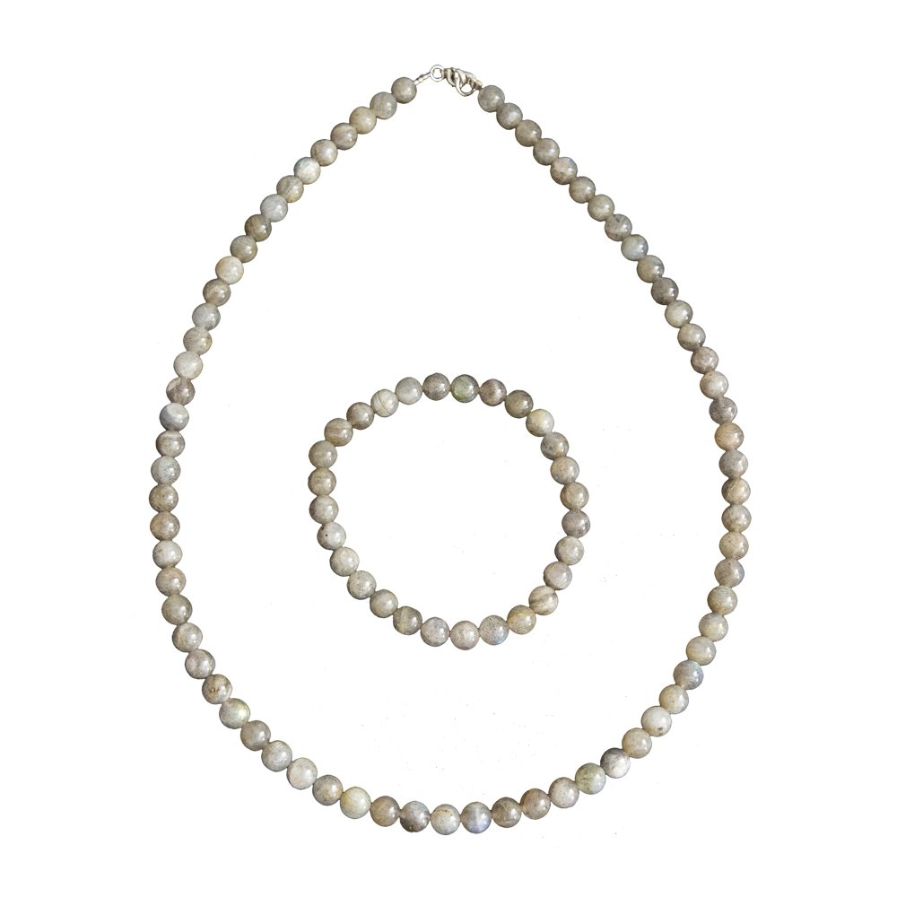 Parure composée du bracelet et du collier en spectrolite en pierres boules de 6mm