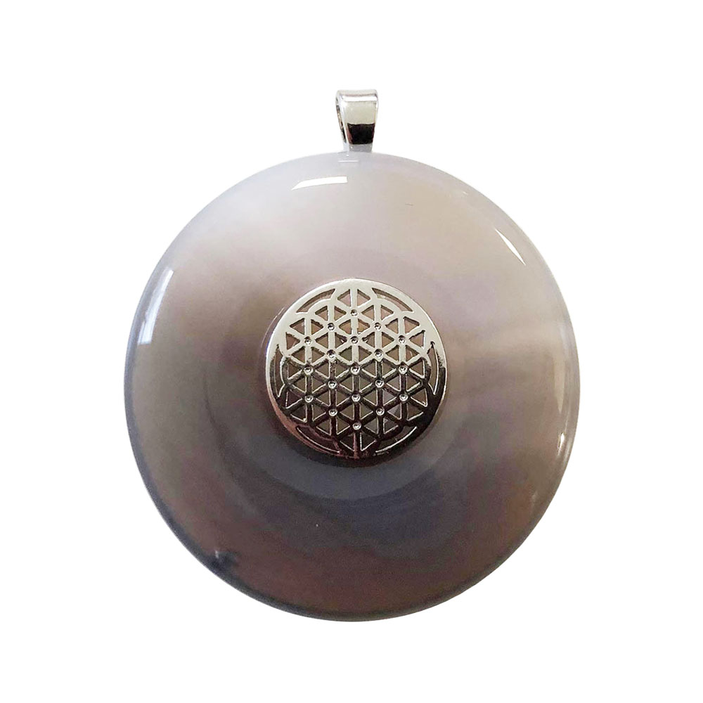 - Ce pendentif agate donut est un objet favorisant la chance et l’ancrage. Elle améliore l’équilibre entre les différentes composantes de votre psyché, et permet de passer outre des blocages qui vous paralyseraient. L’agate est réputée pour favoriser l’auto-psychanalyse et les processus d’introspection.