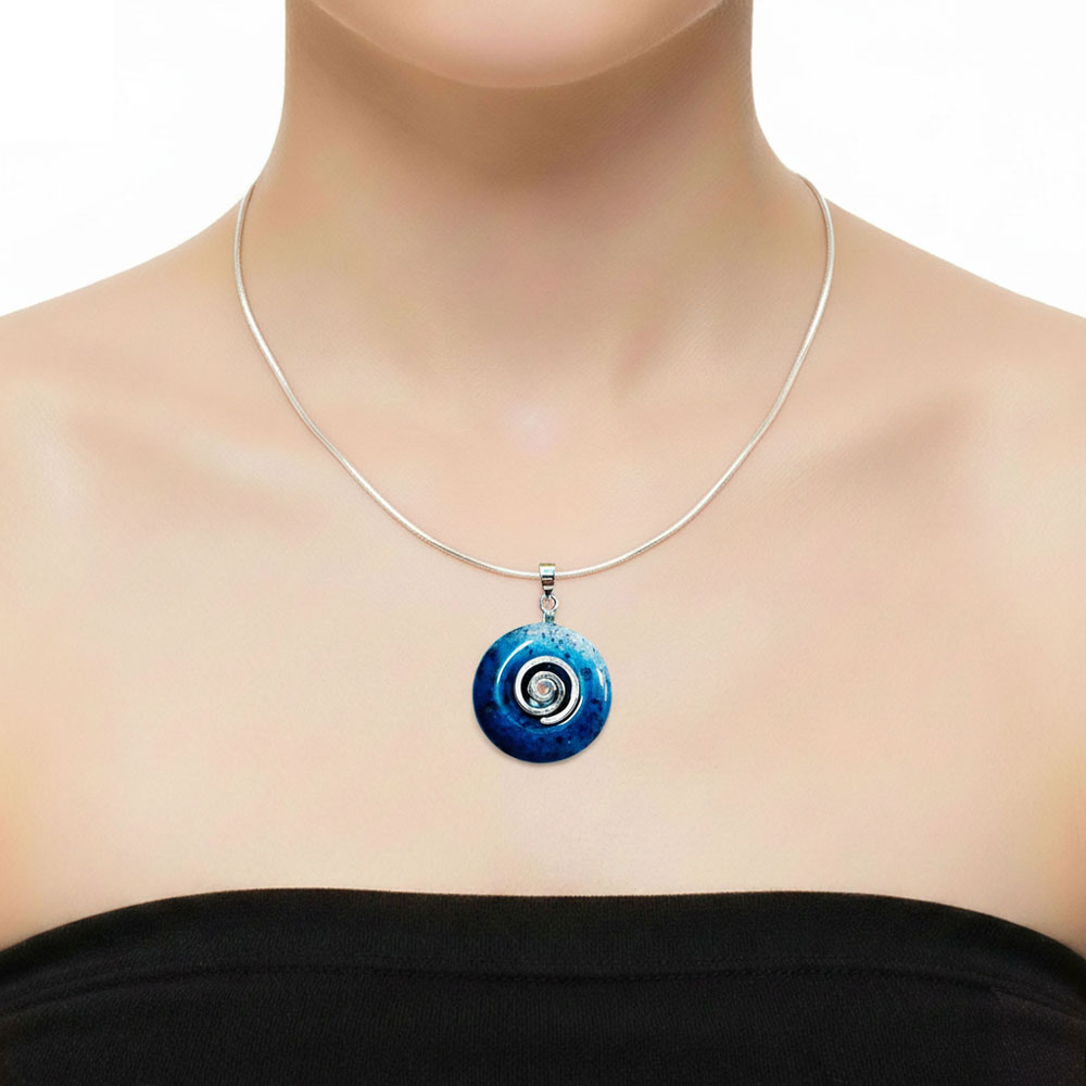 Le pendentif pendentif dumortiérite pi chinois se porte au cou. Sa couleur bleue s’accorde avec de nombreuses tenues. Sa dimension de 20 mm de diamètre en fait un bijou discret. Toutefois, son éclat et sa beauté attirent les regards. Différentes chaînes sont disponibles pour attacher le pendentif. En acier, argent, doré ou plaqué or, vous choisirez celle qui vous correspond le plus. La longueur de la chaîne est aussi proposée en plusieurs dimensions. Le pendentif peut être agrémenté d’un support en forme de spirale. Celui-ci peut être argenté ou doré. Il se place au-dessus de l’orifice. Le pendentif dumortiérite pi chinois est livré dans une bourse en satin. Mais pour une protection optimale ou pour un cadeau, il est possible de sélectionner un écrin blanc perlé.