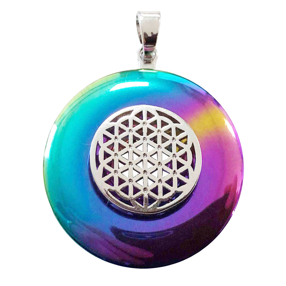 Pendentif Hématite arc-en-ciel – Forme : PI Chinois ou Donut