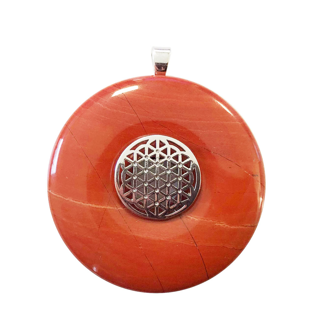 Pouvoirs du pendentif Jaspe rouge en forme de pi chinois ou donut sur le plan physique en lithothérapie
