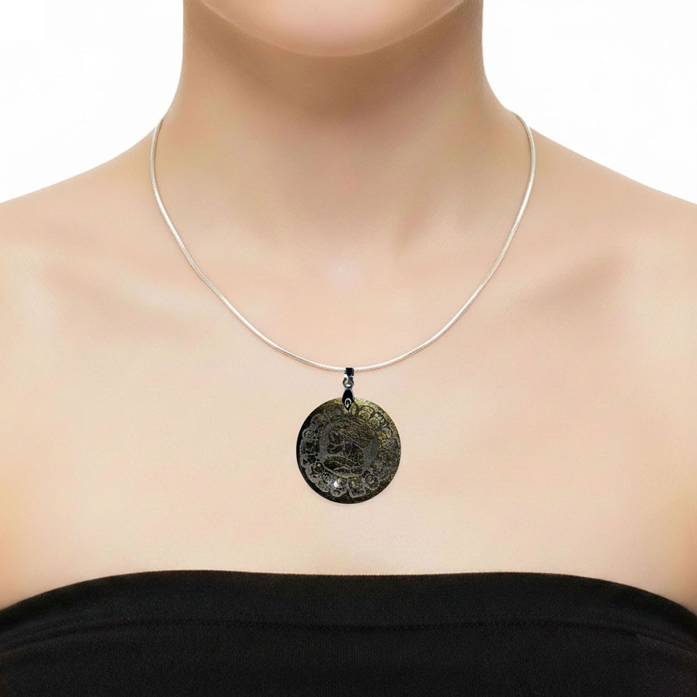 Descriptif du pendentif Obsidienne dorée Calendrier Maya – rond