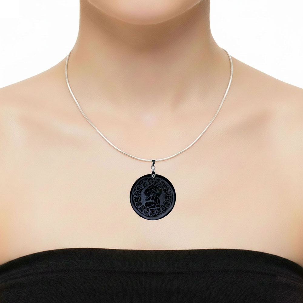 Pendentif Obsidienne noire Calendrier Maya – Forme : rond