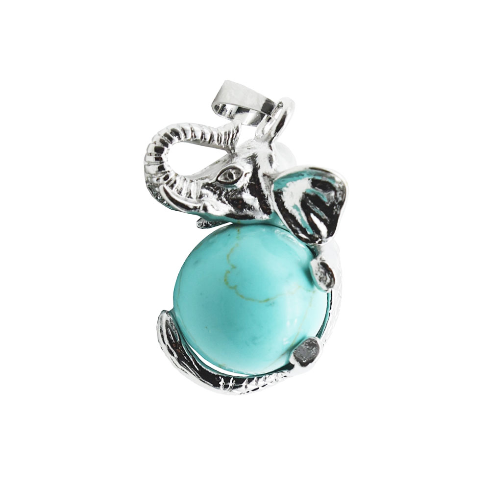 - Le pendentif Turquoise stabilisée éléphant renforce la force d’âme et la bravoure pour faire face avec force et calme aux difficultés du quotidien. La Turquoise renforce la force intérieure et calme l’esprit. La figure de l’éléphant renforce le pouvoir de la pierre. Ce pendentif joue un rôle de booster pour le mental.