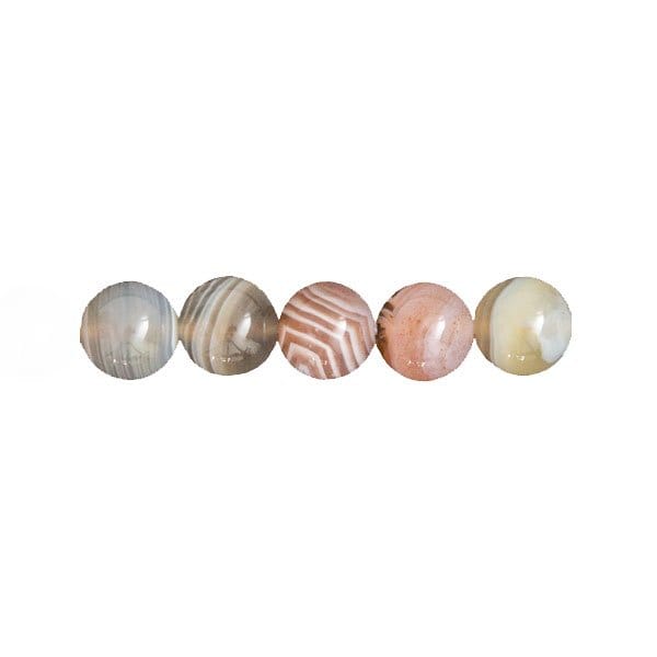 - Porteuse de paix, de joie intérieure, la perle ronde agate Botswana stimule l’harmonie. Sa présence apporte un bien-être constant et palpable. Elle galvanise en apportant force et endurance, éléments importants pour l’équilibre des énergies. C’est un bon moyen pour entrer dans une atmosphère de médiation, en communication avec le transcendantal.