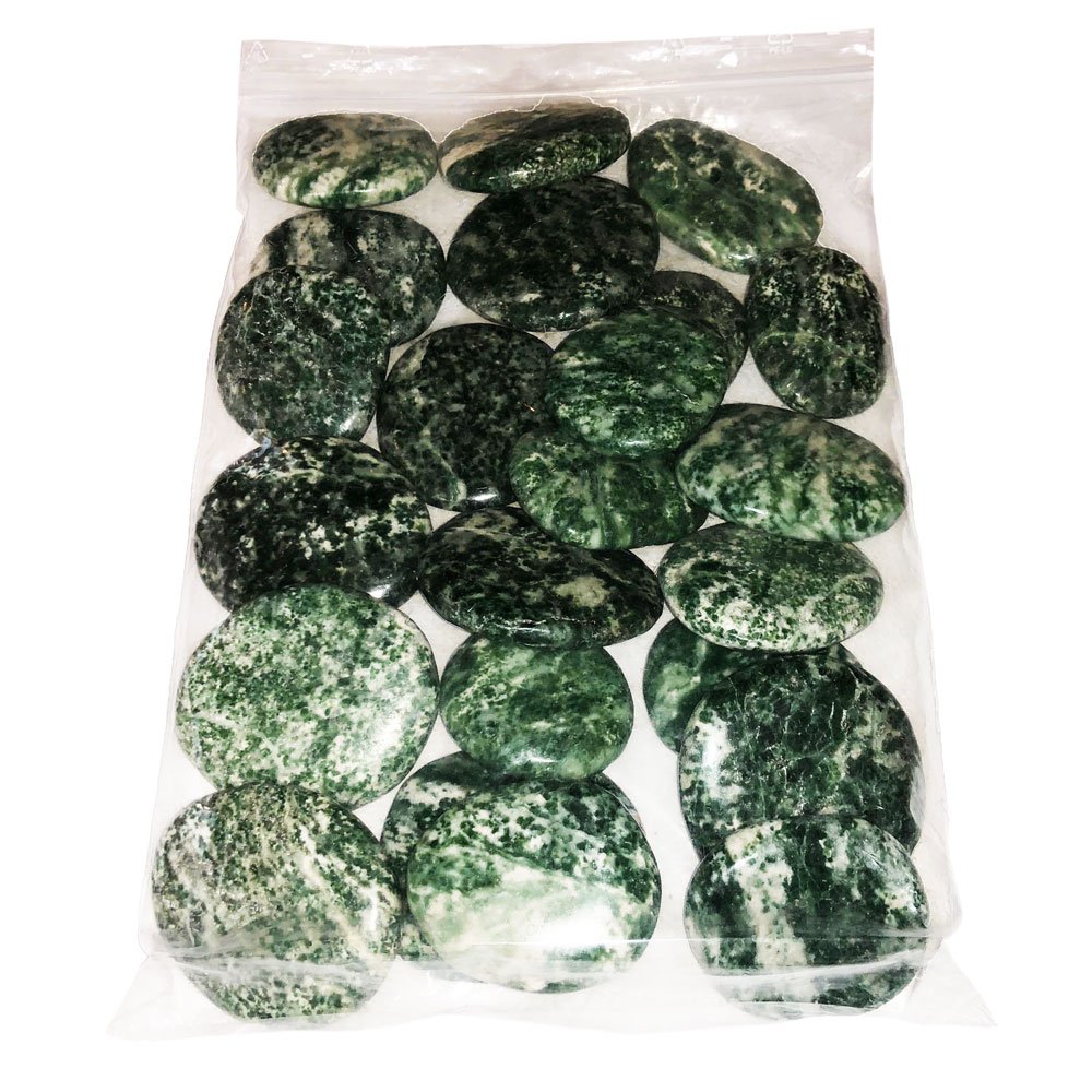 La serpentine est une pierre particulière, car elle représente à elle seule une large famille minérale du groupe des silicates. Elle est ainsi difficile à identifier et donc unique en son genre. On la rencontre sous plusieurs couleurs, mais la plus répandue est la serpentine verte, souvent marbrée de gris et de blanc. Le nom serpentine vient du latin « serpentinus » et du grec « ophidis » qui signifient respectivement serpent et pierre. Ses vertus et son nom reptilien auraient incité les Romains à l’utiliser pour calmer les morsures venimeuses. Les galets serpentine foncée en 1kg sont de forme arrondie, leur éclat oscille entre soyeux, lisse et gras. Les propriétés grasses furent particulièrement prisées des Égyptiens et des Perses pour la création de sceaux. Son utilisation traverse ainsi les époques, tant pour l’outillage (haches, armes, bols..) que pour l’ornement, les objets religieux ou de rituels.