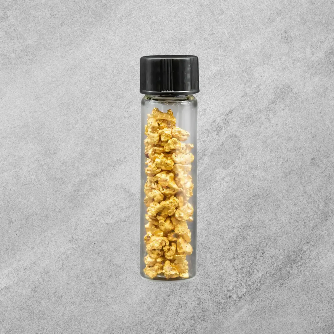 Choisissez un format de référence avec 1 once troy (31,103 g) de pépites d’or naturelles provenant d’Australie-Occidentale, conditionnées en fiole scellée ou en capsule acrylique. Ce lot s’adresse aux investisseurs souhaitant détenir de l’or physique, aux revendeurs en ligne et à la préparation de paydirt : une solution simple, tangible et immédiatement exploitable. Grâce à nos partenariats directs au cœur des districts aurifères, nous proposons un positionnement grossiste particulièrement compétitif. Le tarif est révisé chaque semaine selon le cours spot de l’or, la disponibilité et nos coûts d’acquisition. La provenance exacte peut varier à l’intérieur de la Western Australia, mais l’ensemble de l’or est sourcé de manière éthique et réputé pour sa haute pureté. Chaque fiole contient un assortiment de pépites de tailles variables : la majorité se situe entre 1 et 6 mm, offrant un bon équilibre entre volume visuel et nombre de grains.