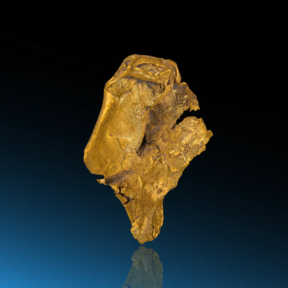 Rare entre toutes, cette pépite est une véritable feuille d’or naturelle, façonnée par la Terre au fil de millions d’années. Son élégance tient à sa finesse exceptionnelle et à la fluidité de ses courbes, rappelant la délicatesse d’une feuille figée dans l’or. Ce type de formation est extrêmement fragile : il est bien souvent détruit lors de l’extraction, ce qui en fait un spécimen particulièrement rare. Provenant du légendaire Golden Triangle, en Victoria (Australie occidentale, autour de Brisbane), cette pépite affiche un poids de 0,89 g pour environ 1,8 × 1,0 × 0,1 cm. Son éclat, sa finesse et sa forme naturelle en font une pièce de collection remarquable, recherchée aussi bien par les collectionneurs que par les amateurs de minéralogie et de lithothérapie.