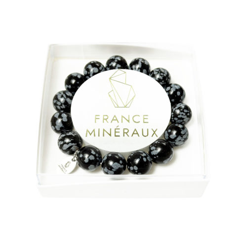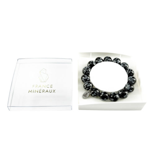 Bracelet Obsidienne Neige - Perles de 12mm