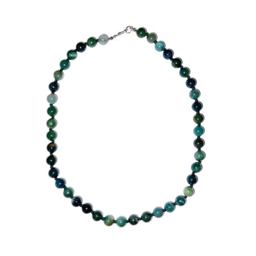 Collier Agate mousse - Pierres boules nouées 8mm - 45cm