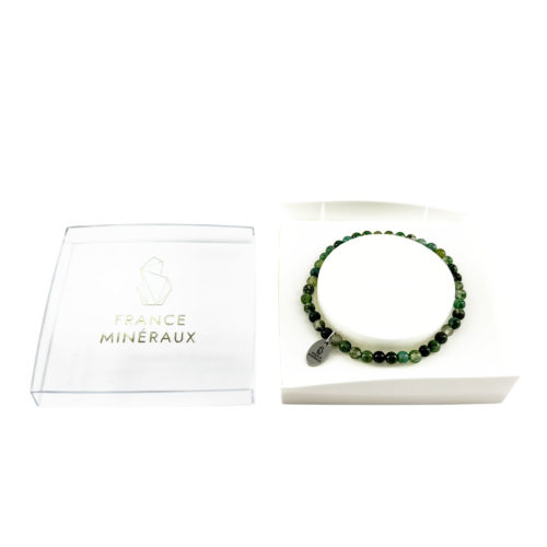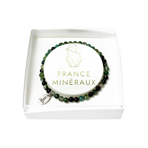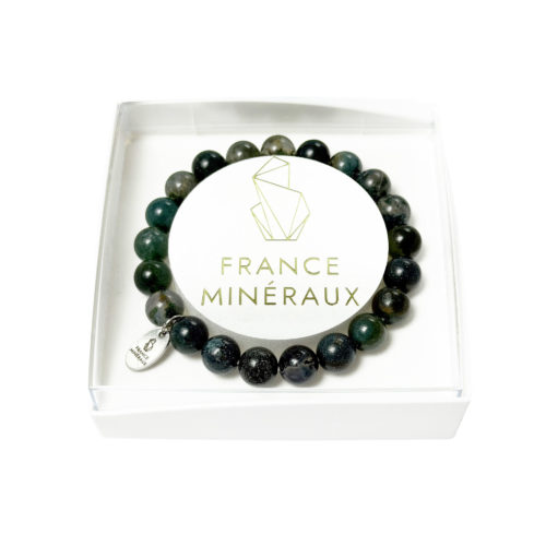 Collier Agate mousse - Pierres boules nouées 8mm - 45cm