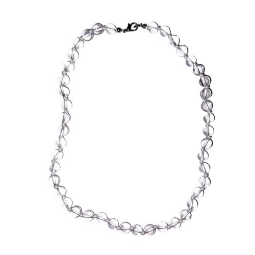 Collier Cristal de roche - Pierres boules nouées 8mm - 45cm