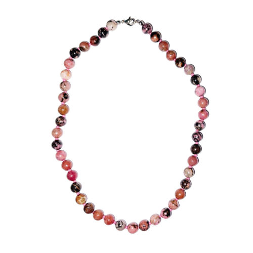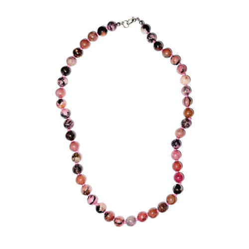 Collier Rhodonite - Pierres boules nouées 8mm - 45cm
